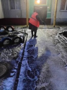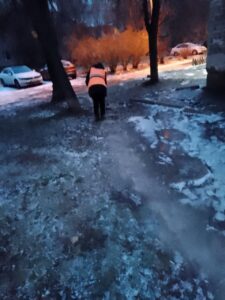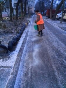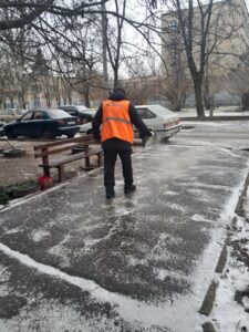Наш благоустрій ще на світанку приступив до посипання усіх доріжек, щоб людям було комфортно і не страшно пересуватися.