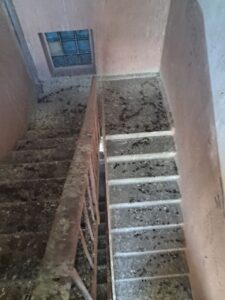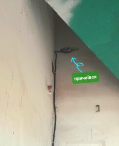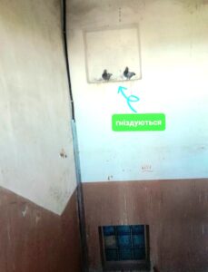 Річ в тім, що тут з 11 по 14й поверх усі сходинкові клітини укриті голубиним лайном. Ці птахи буквально зробили собі в багатоповерхівці величезну голубятню, де гніздуються і сплять.