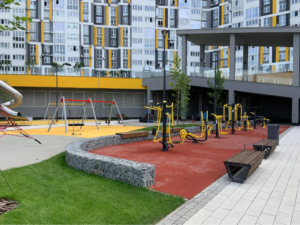Двір нового часу — це простір, у якому добре реалізовані доступність та інклюзивність. Коли кожна людина, незалежно від своїх фізичних можливостей, може потрапити туди, куди їй потрібно. Приділіть особливу увагу сполученням поверхонь (бортовим каменям, пандусам, сходам).