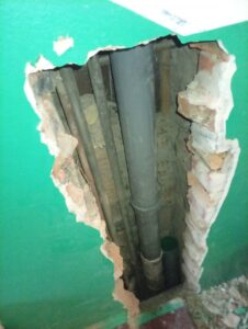 Ця проблема особливо поширена в древніх дво- та триповерхових бпгатоквартирних будівлях і в «хрущовках», де до труб можна підібратися тільки розхерячивши капітальну стіну у під’їзді. Шо ми і робимо акуратно та елегантно.