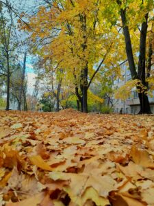 А ковдра з жовтого кленового листя перетворила тротуари в рукава великого ажурного светра. Це вулиця Полякова. (Не наша ділянка☝️🙂).
