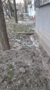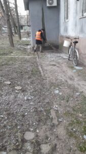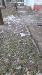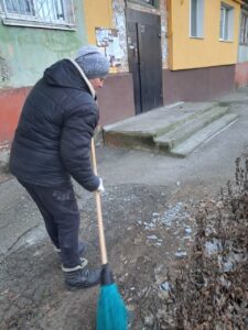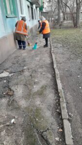 З самого світанку приступили до прибирання уламків і скла, які посипали територію біля постраждалих від обстрілу будинків у Космічному районі.