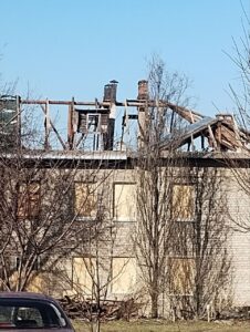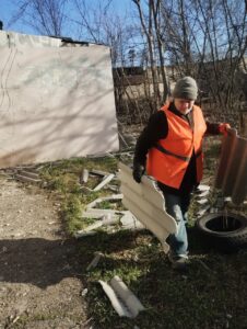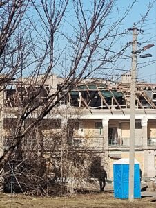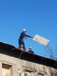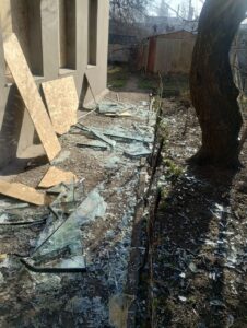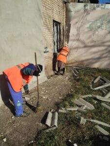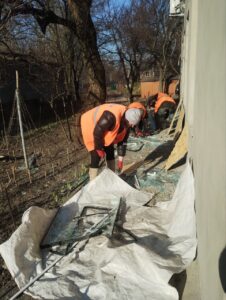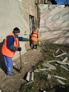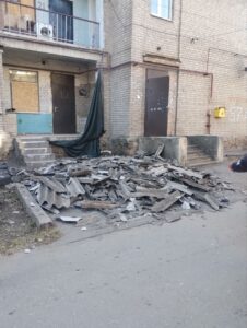 Бригади працівників нашого благоустрію зранку почали прибирати наслідки варварського обстрілу: розтрощені дахи, вирвані вибуховою хвилею вікна, гори скла, уламки стін.