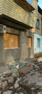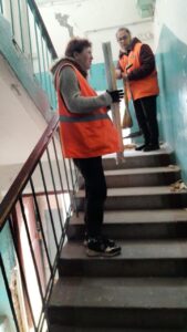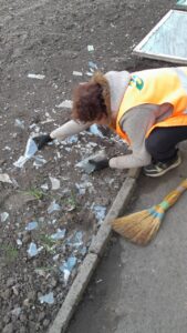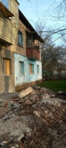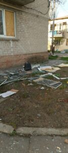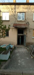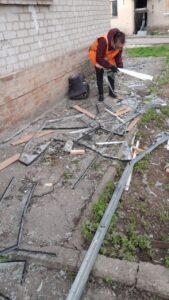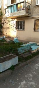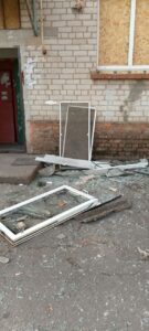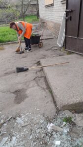 Сьогодні наші робітниці почали прибирання уламків, скла, потрощеної деревини. Наводять лад і у під’їздах, де повилітали рами і скло.