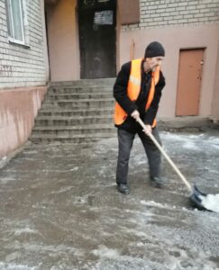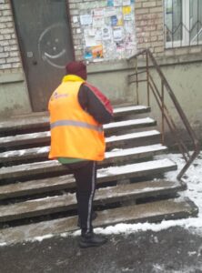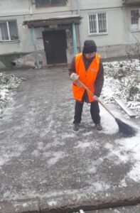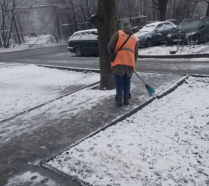 Поки ви спали, наші працівники благоустрію вже розчищали доріжки, прибирали сніг зі сходинок, піклувалися, щоб вашим ніжкам було не склизько.